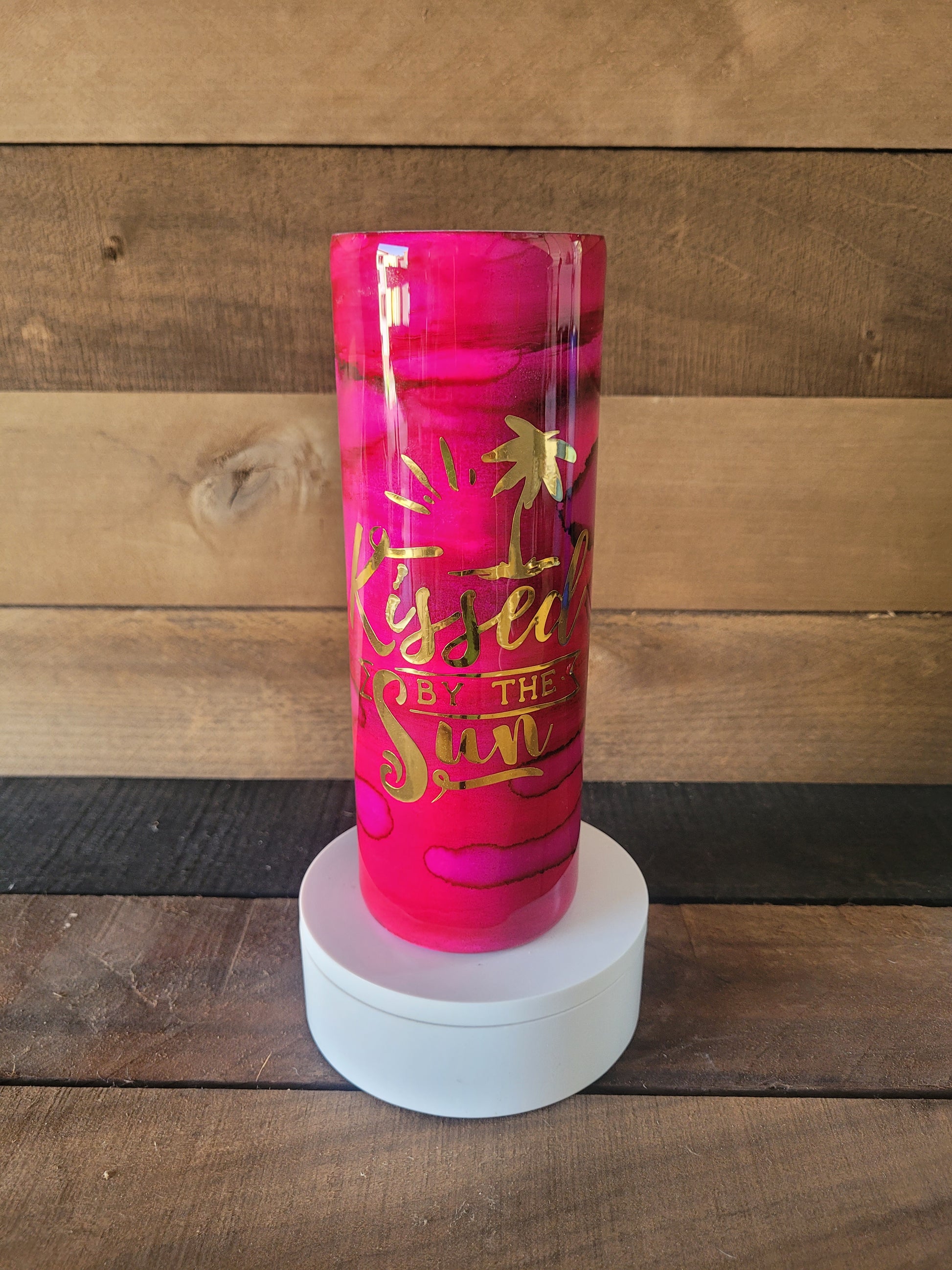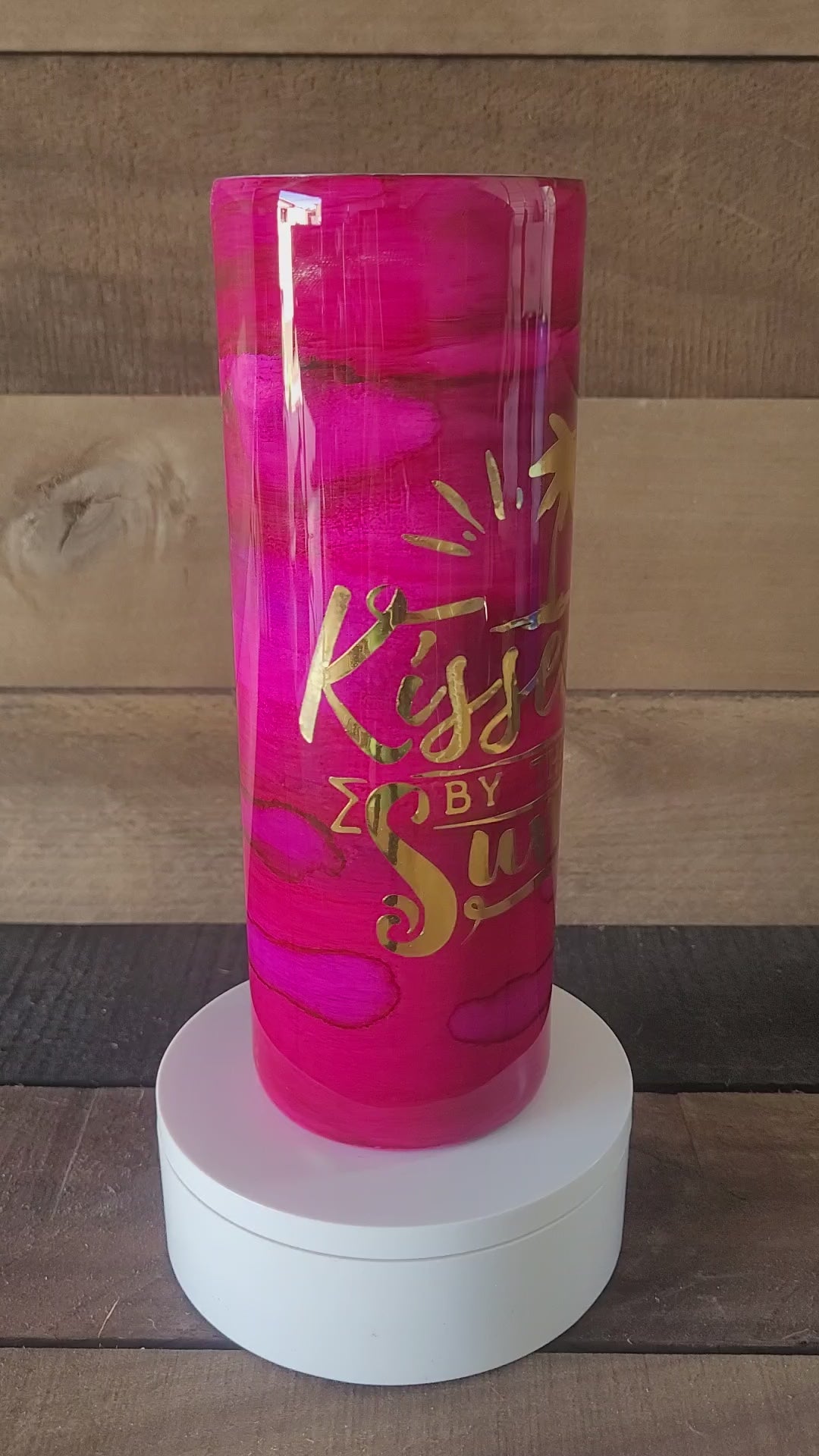 Here at Salty Sway Creations we love our beach life! This tumbler is all about the ladies with the beautiful multitude of pinks and the glamorous gold foil design. This tumbler comes with a closing lid and straw. Be the envy of your office mates or beach enjoying friends!